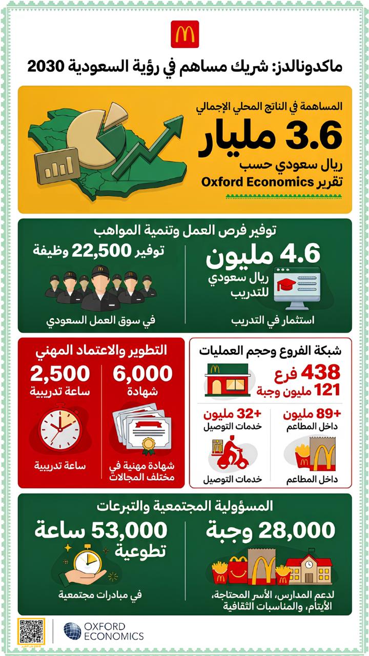 JEDDAH, SAUDI ARABIA, April 26, 2026 /EINPresswire.com/ -- McDonald’s, a leading player in the Quick Service Restaurant (QSR) sector, has unveiled its Socio-Economic Impact Report for its operations in the Kingdom of Saudi Arabia, developed in collaboration with Oxford Economics. The report provides a comprehensive and credible overview of the company’s contribution to the national economy, highlighting its role as a sustainable economic and development partner aligned with Saudi Vision 2030.— Eng. Abdulrahman Alireza, Chief Executive Officer of Reza Food